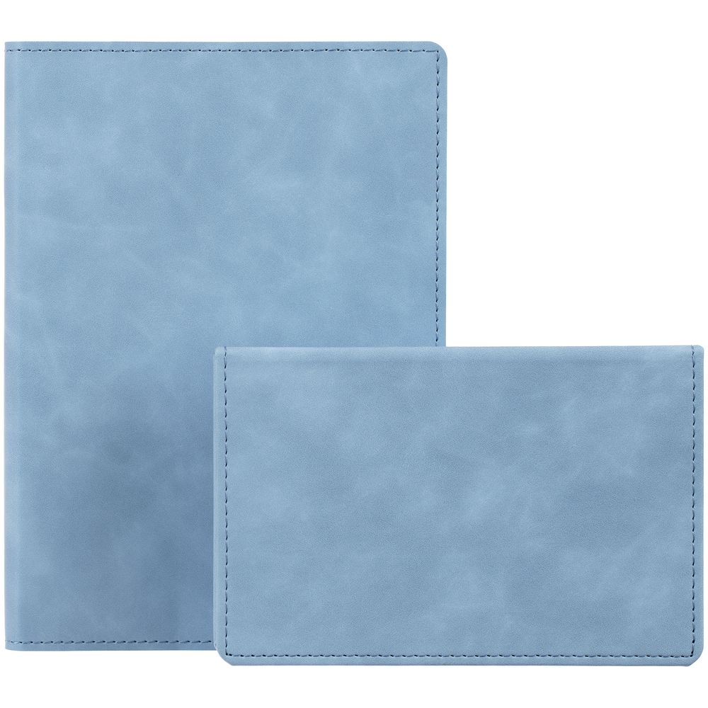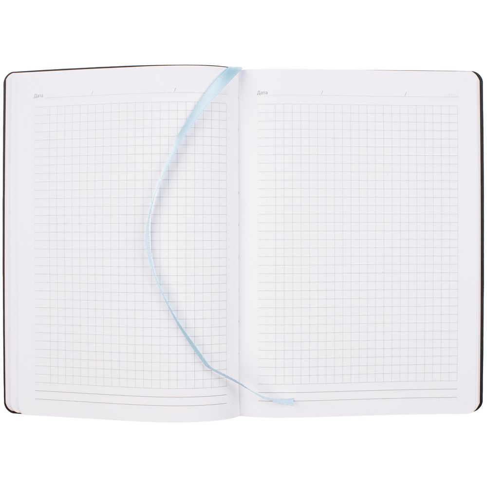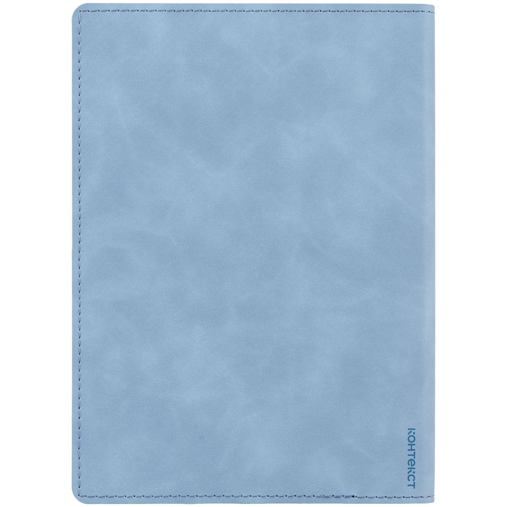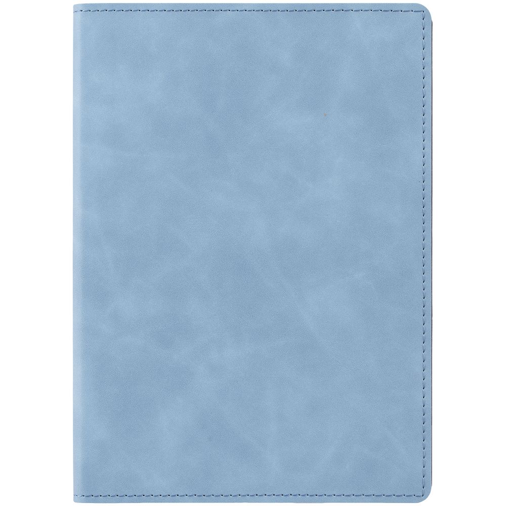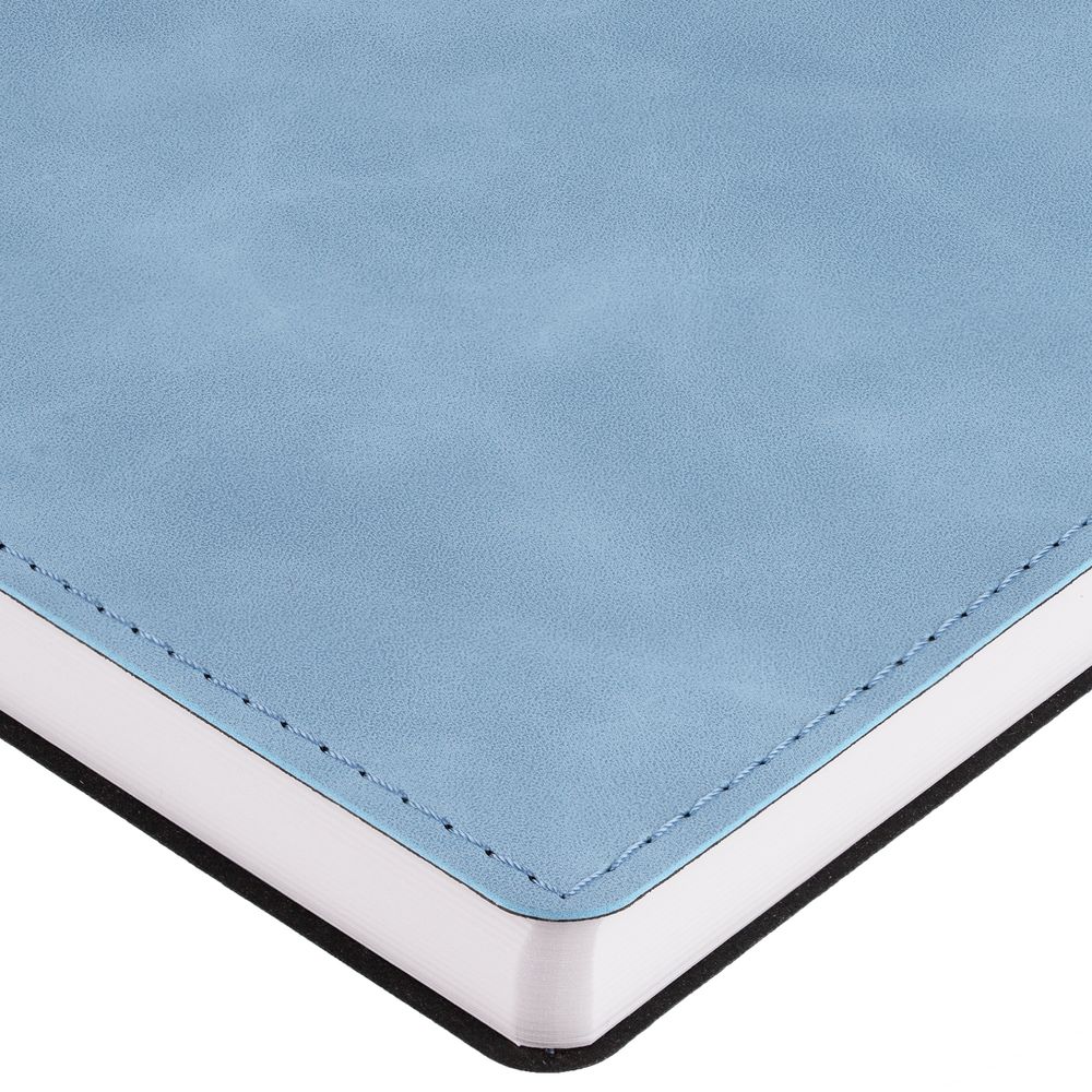 Ежедневник в клетку, с гибкой обложкой, выполнен из материала Nubuck Touch, голубой JJ, дополнен ляссе светло-голубого цвета.