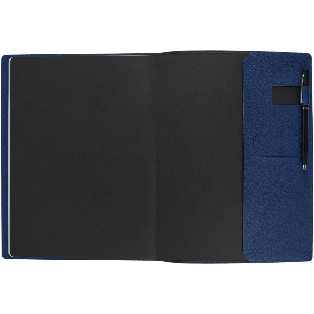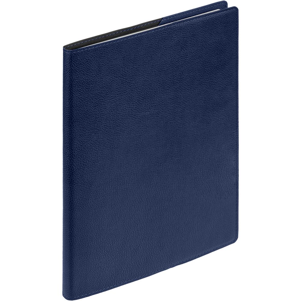 Ежедневник в суперобложке выполнен из материала La Fite, синий НН, дополнен ляссе и капталом черного цвета.