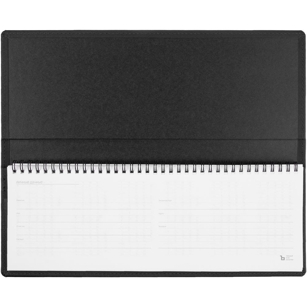 Планинг с твердой обложкой, выполнен из материала Canyon, черный АА.