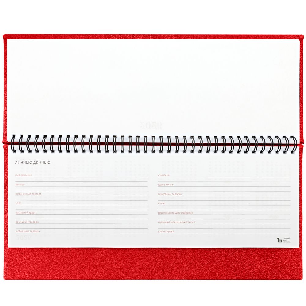 Планинг с твердой обложкой с поролоном, выполнен из материала La Fite, красный РР.