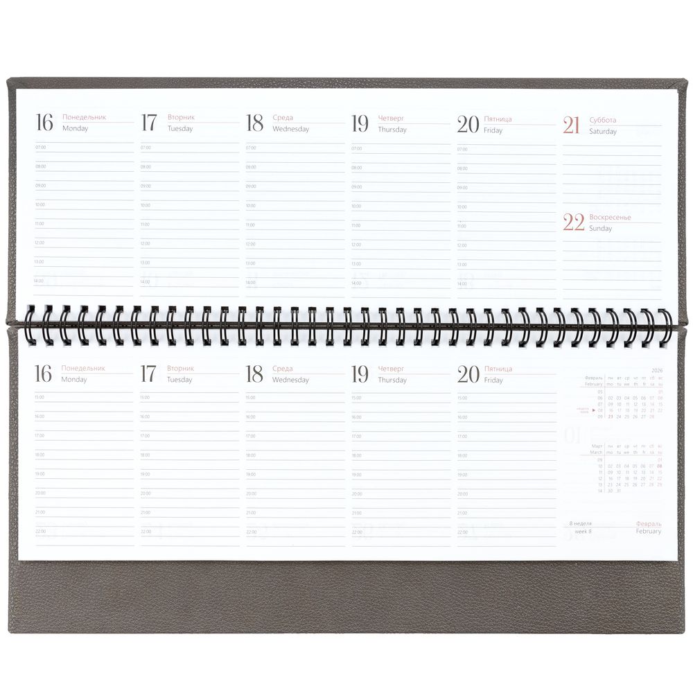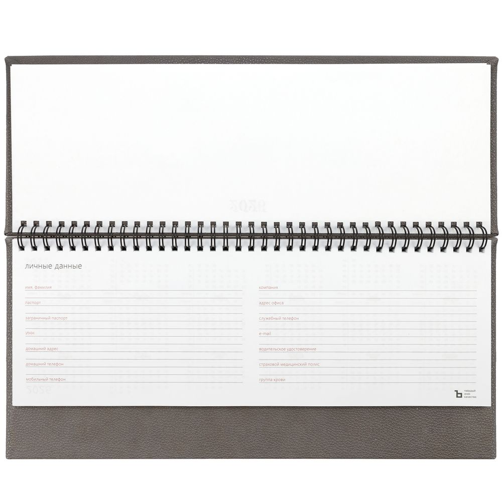 Планинг с твердой обложкой с поролоном, выполнен из материала La Fite, серый СС.