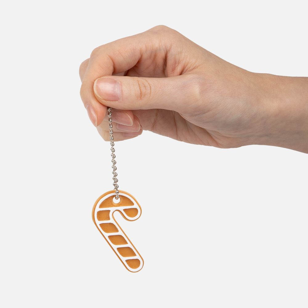 Мини-подвеска на фото изготовлена из PLA-пластика двух цветов: телесный 721С и белый.