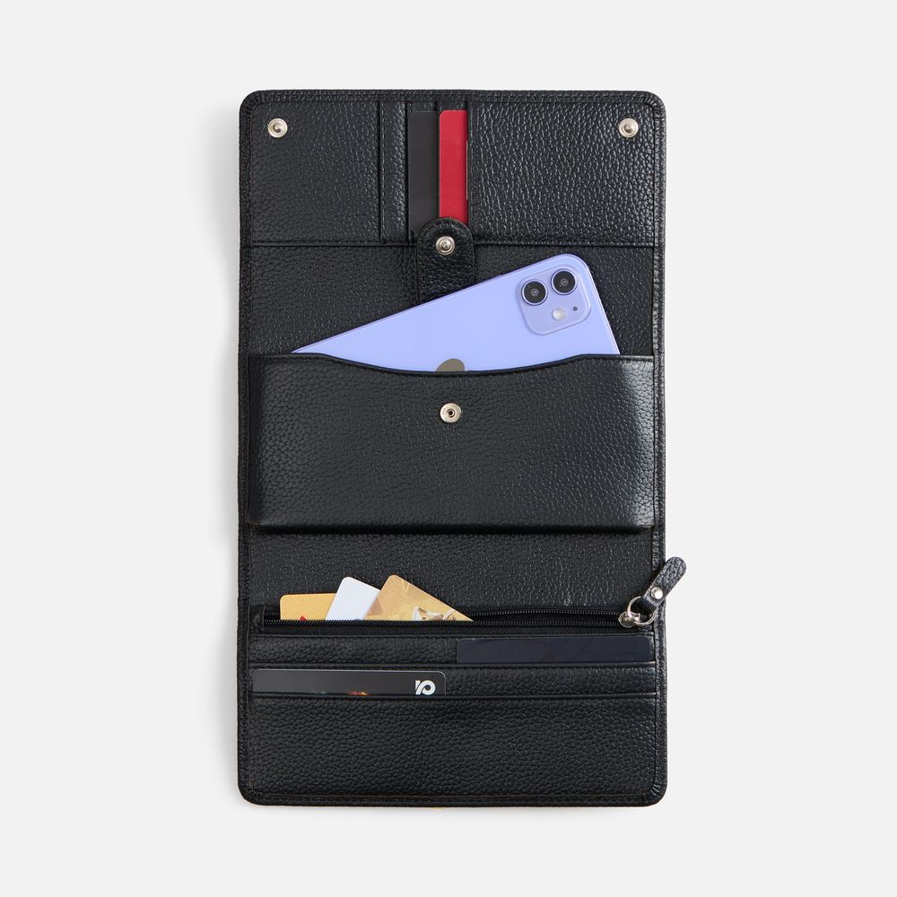 Клатч Unison — утонченное воплощение сдержанной роскоши. Это вместительное и одновременно компактное изделие — и кошелек, и визитница, и мини-сумочка со множеством отделений для самого главного, в том числе и смартфона. Лаконичное и продуманное исполнение делает клатч универсальным повседневным аксессуаром, который будет уместен и на деловой встрече, и на вечернем мероприятии.