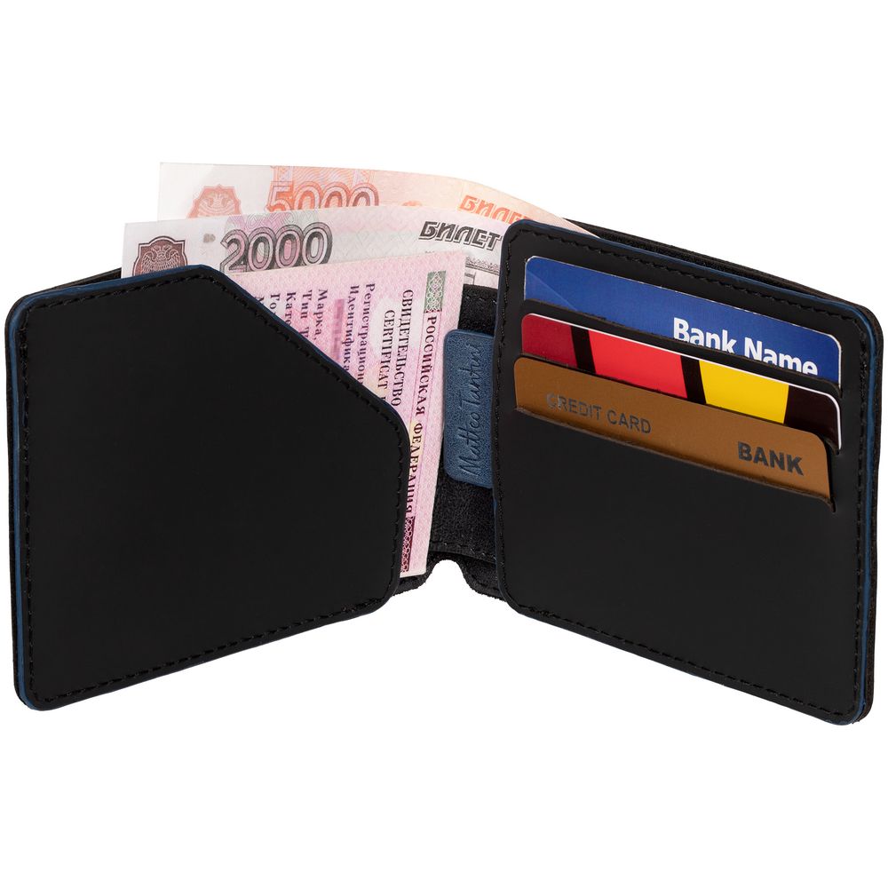 У нас Вы можете заказать Портмоне Arrival, черное с синим качественного бренда Matteo Tantini с логотипом по выгодной цене. Выберите способ нанесения логотипа и добавьте товар в корзину. Окончательную полную стоимость с брендированием по Вашему эскизу и доставкой сообщит наш менеджер после оформления заказа.