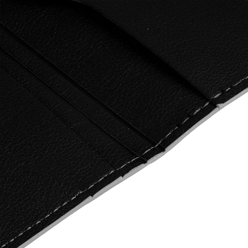 Имеет основное отделение для паспорта и 2 кармана для визиток или кредитных карт.