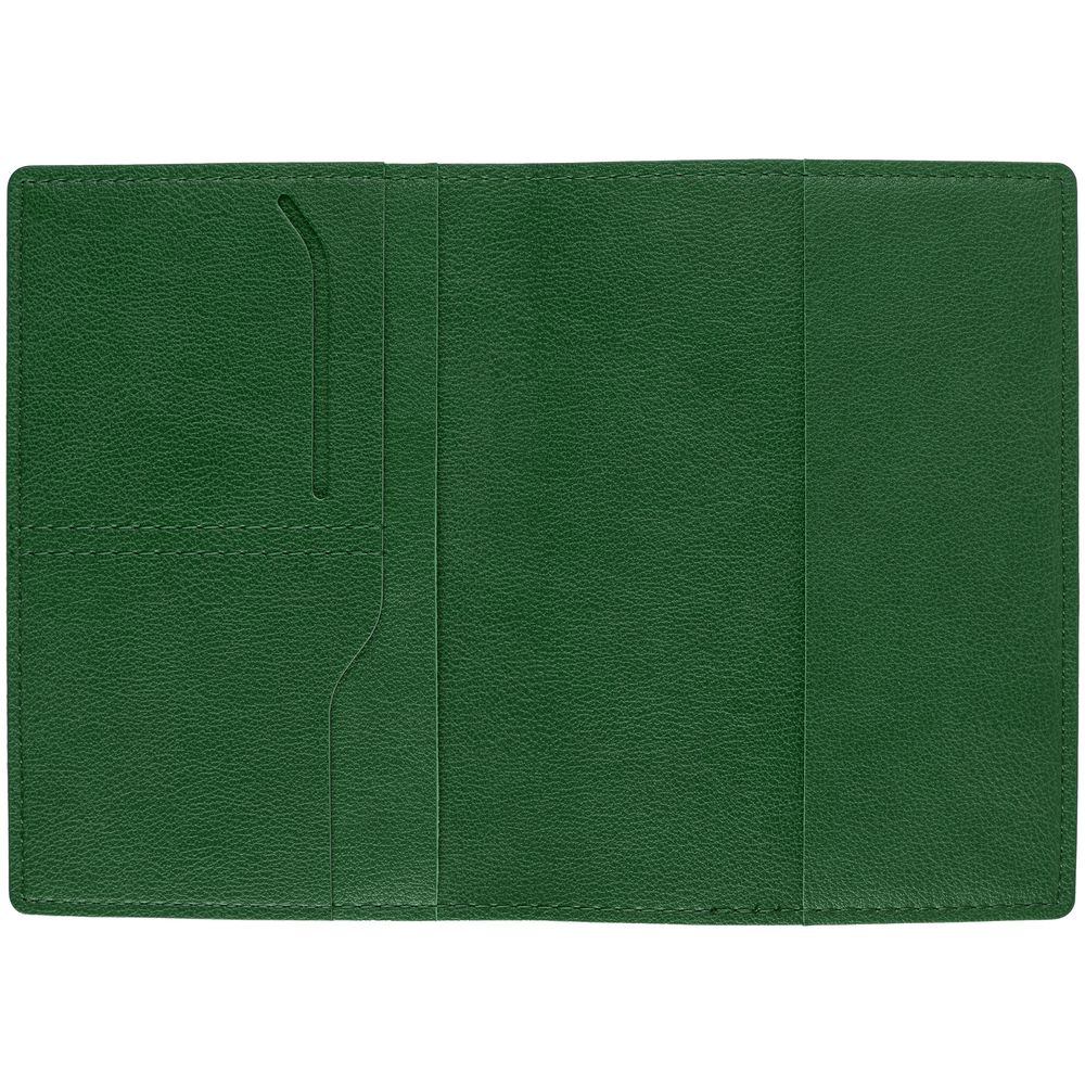 Имеет основное отделение для паспорта и 2 кармана для визиток или кредитных карт.