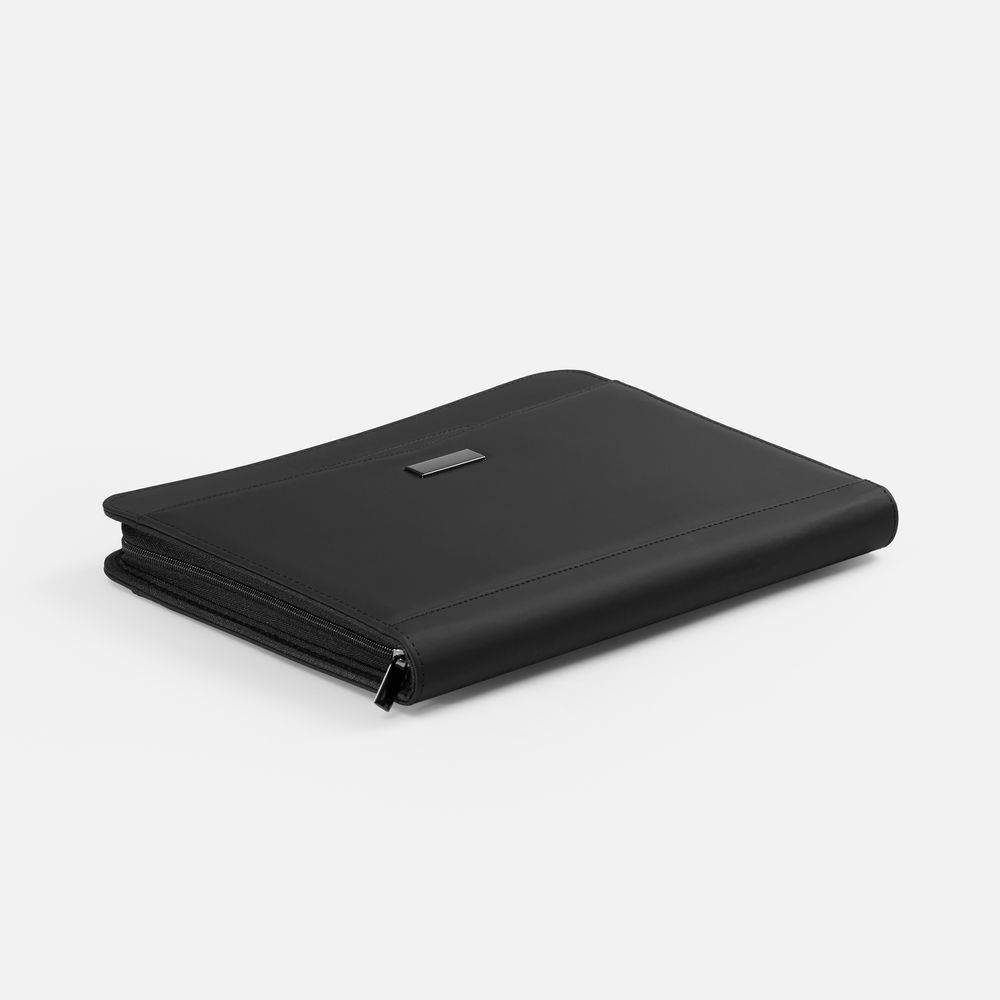 Во вместительной папке предусмотрено множество отделений для визиток, бумаг и письменных принадлежностей — для идеальной организации пространства. Особое преимущество — встроенный блокнот с листами в линейку, который можно легко открепить и положить на его место свои записи, например, для презентаций.