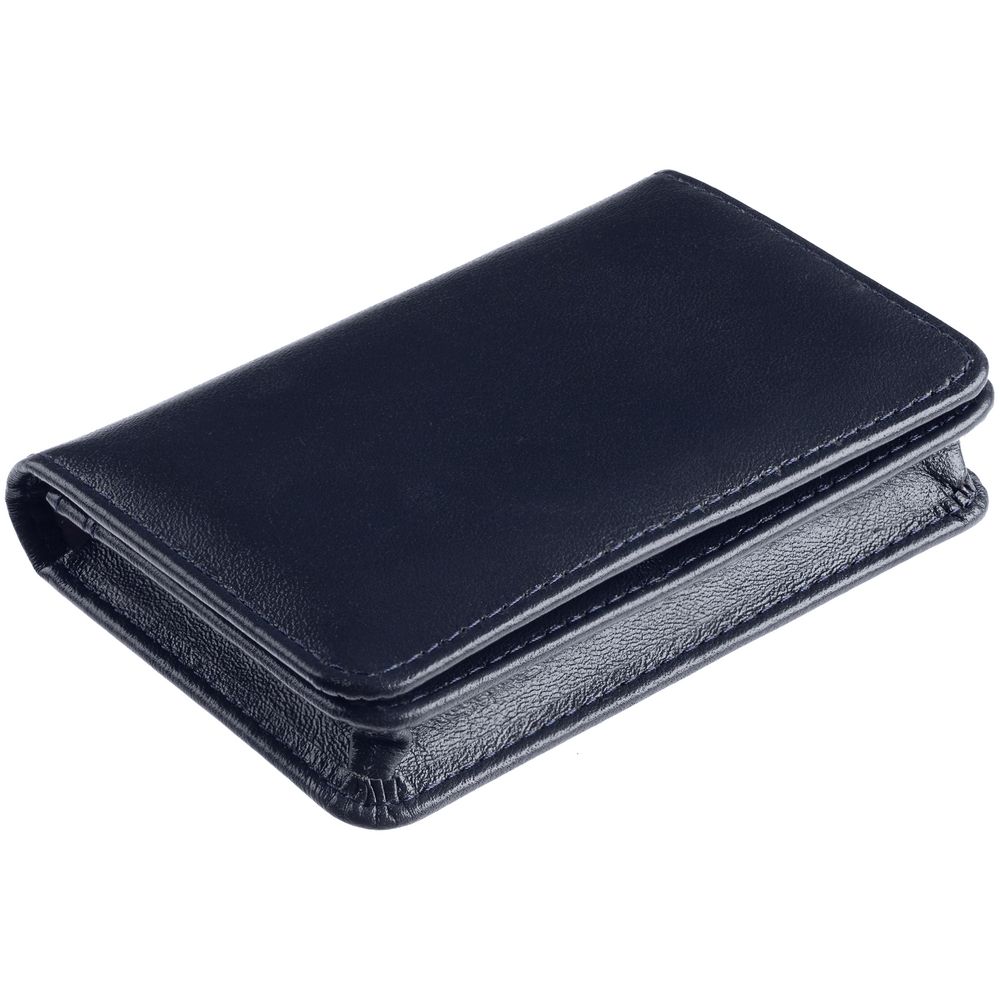 Футляр изготовлен из телячьей кожи, контрастная подкладка из искусственной свиной кожи. Вместительность до 40 визиток.