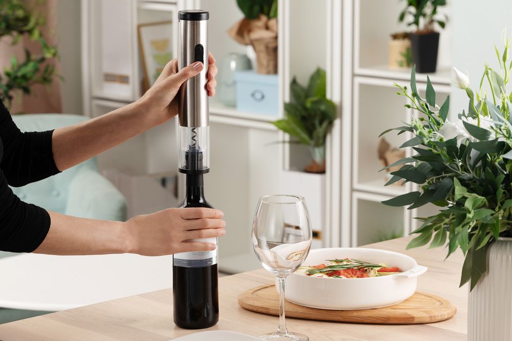 Нажмите нижнюю кнопку, и лезвие вкрутится в пробку, нажмите верхнюю — и бутылка будет открыта.