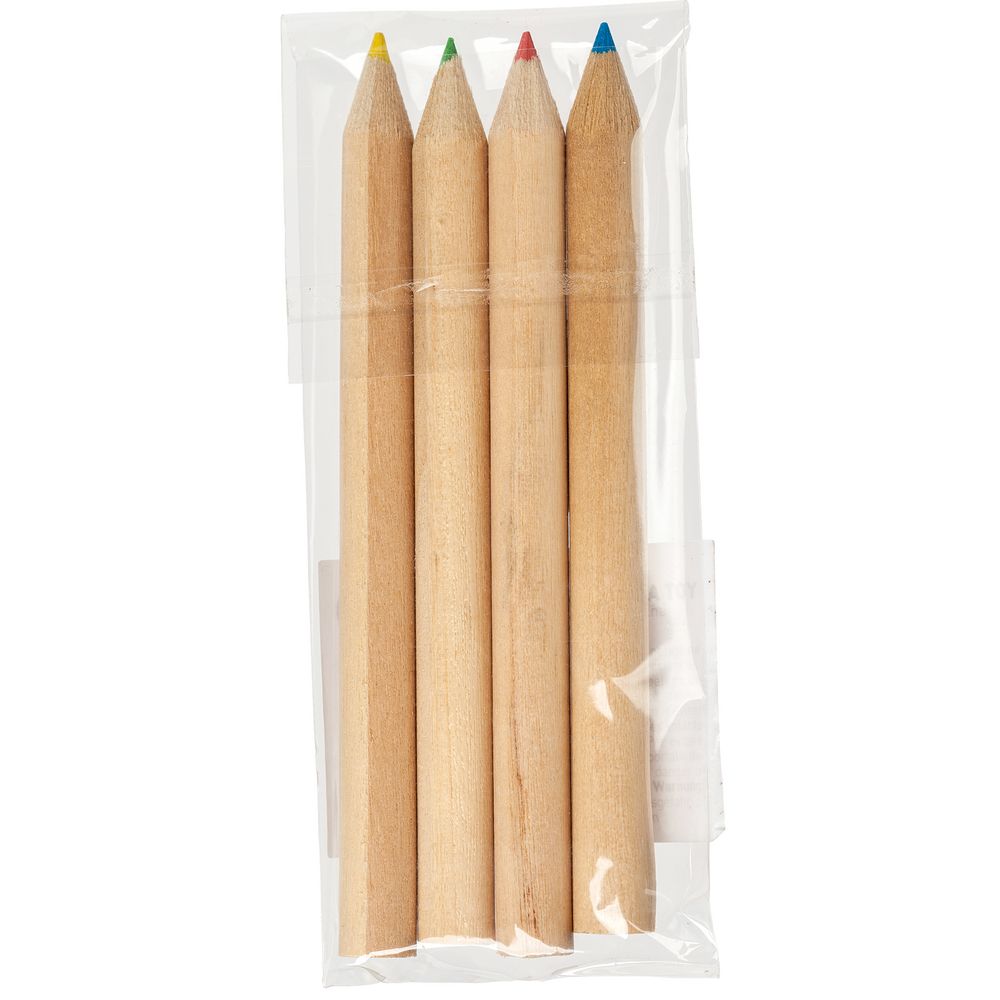 В комплекте 3 раскраски и 4 цветных карандаша.