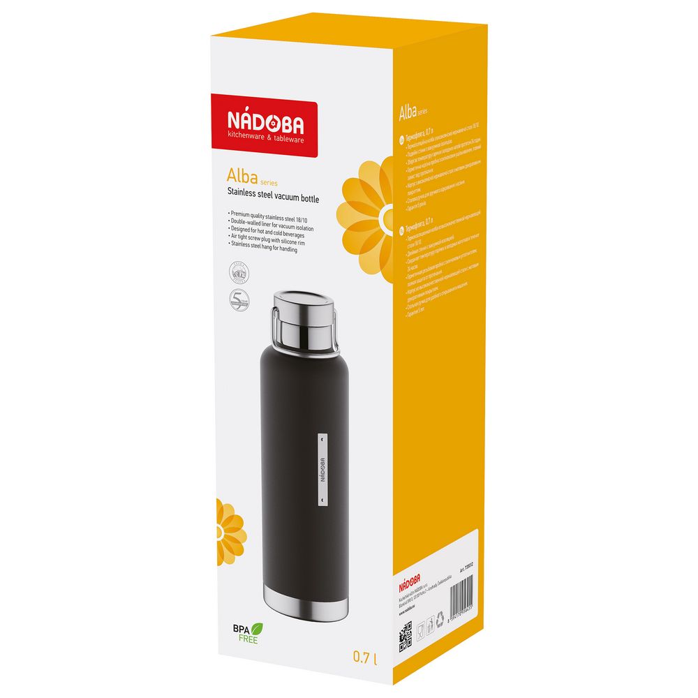 У нас Вы можете заказать Термобутылка Alba, черная качественного бренда Nadoba с логотипом по выгодной цене. Выберите способ нанесения логотипа и добавьте товар в корзину. Окончательную полную стоимость с брендированием по Вашему эскизу и доставкой сообщит наш менеджер после оформления заказа.