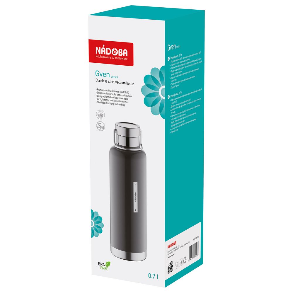 У нас Вы можете заказать Термобутылка Gven, темно-серая качественного бренда Nadoba с логотипом по выгодной цене. Выберите способ нанесения логотипа и добавьте товар в корзину. Окончательную полную стоимость с брендированием по Вашему эскизу и доставкой сообщит наш менеджер после оформления заказа.