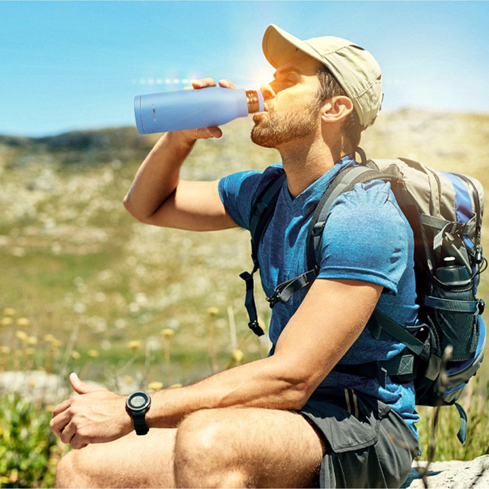 - Конструкция с двойными стенками и вакуумной изоляцией сохраняет содержимое холодным до 24 часов, горячим — до 8 часов