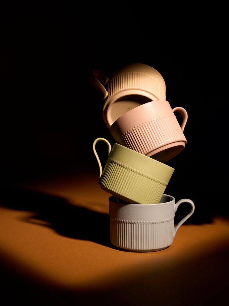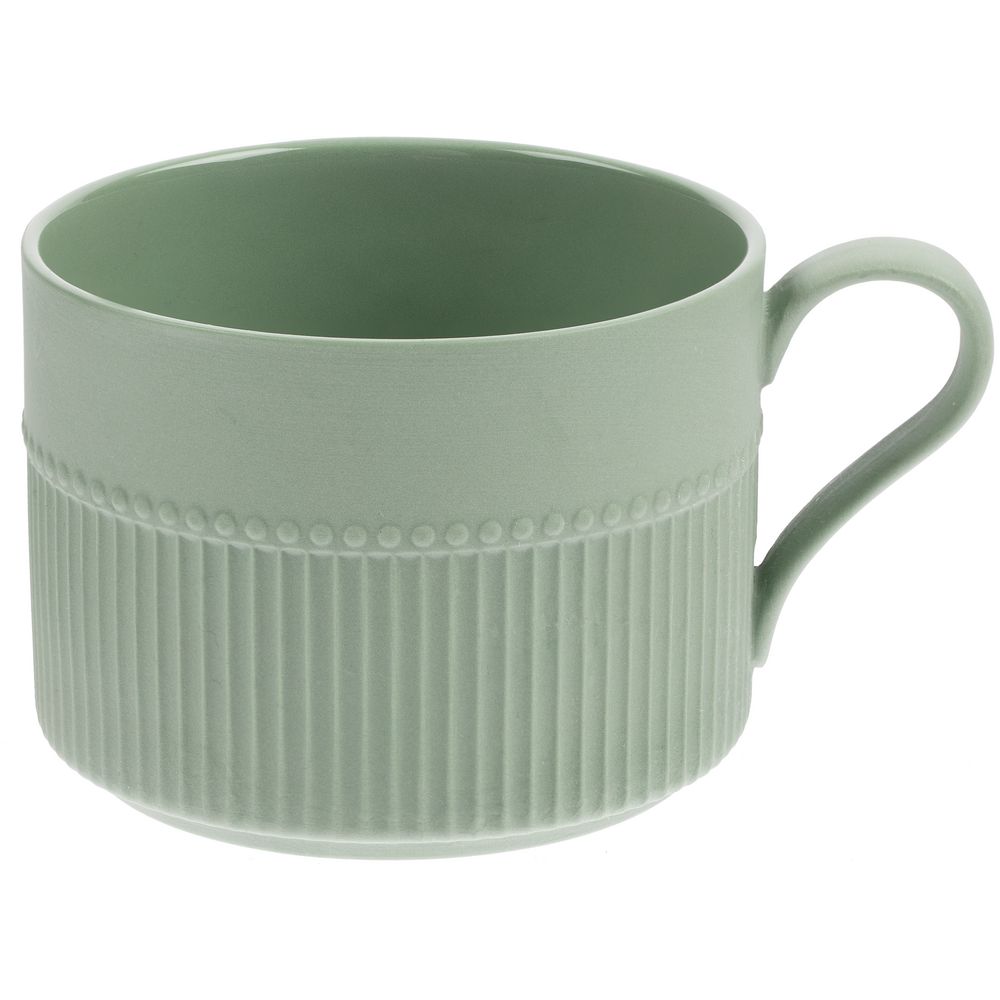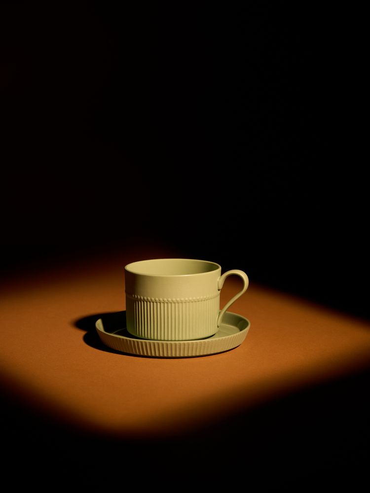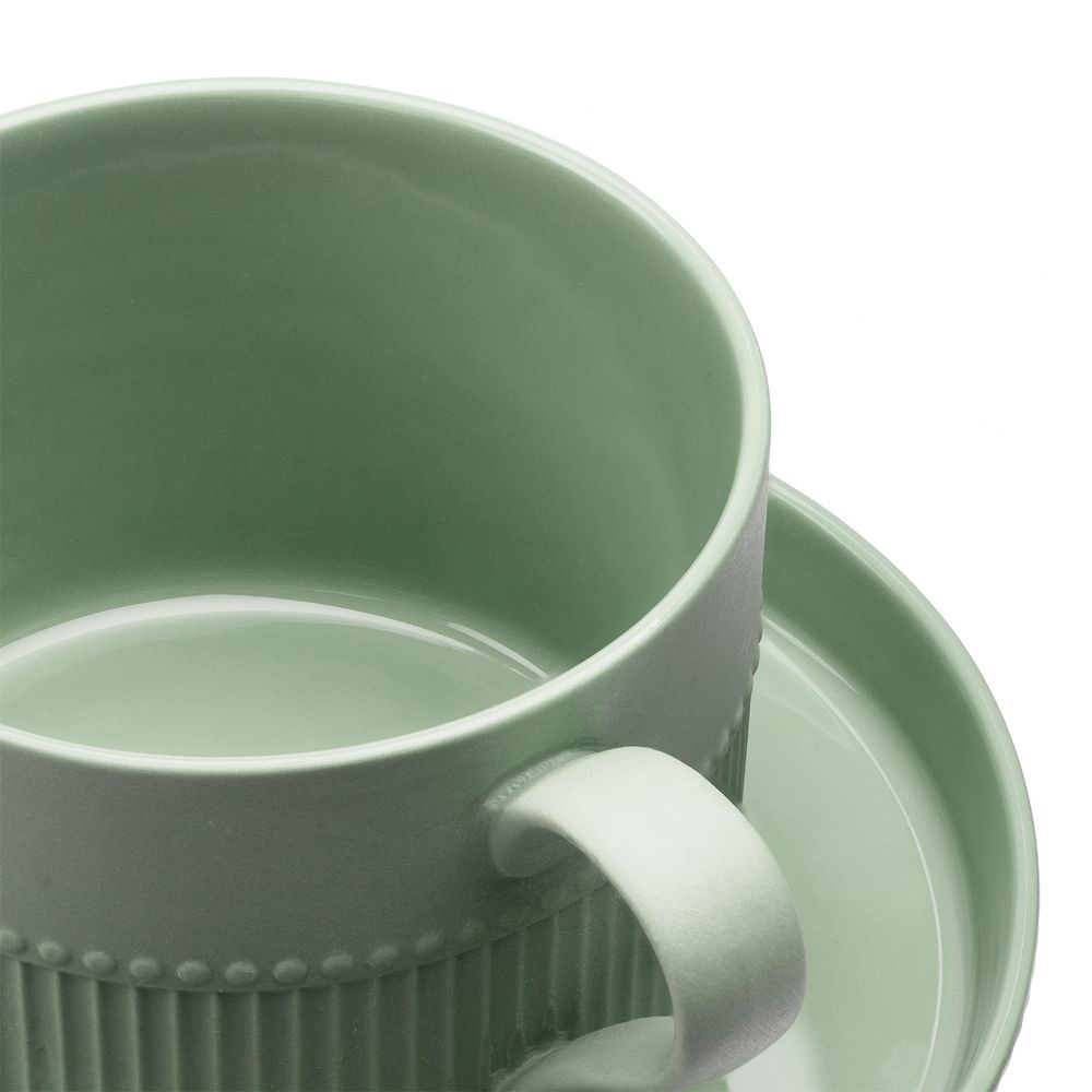Орнамент корпуса кружки и высокого бортика блюдца напоминает изящные каннелюры — вертикальные желобки на колонне. Это добавляет всему изделию изысканности и стилистической завершенности, благородства и античной строгости.