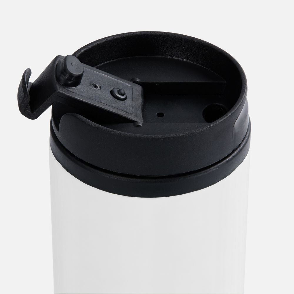 Двухслойная конструкция из пищевого пластика внутри и нержавеющей стали снаружи. Герметичная завинчивающаяся крышка с откидным клапаном для питья.