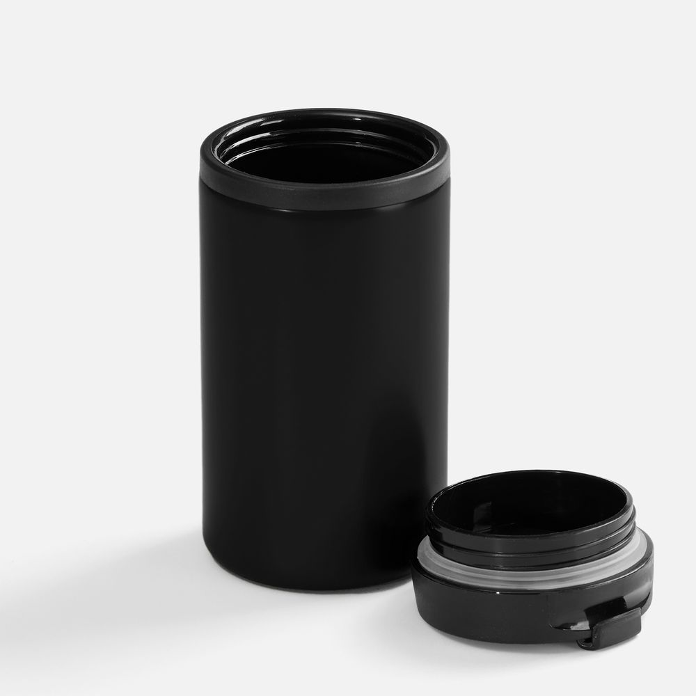 Двухслойная конструкция из пищевого пластика внутри и нержавеющей стали снаружи. Герметичная завинчивающаяся крышка с откидным клапаном для питья.