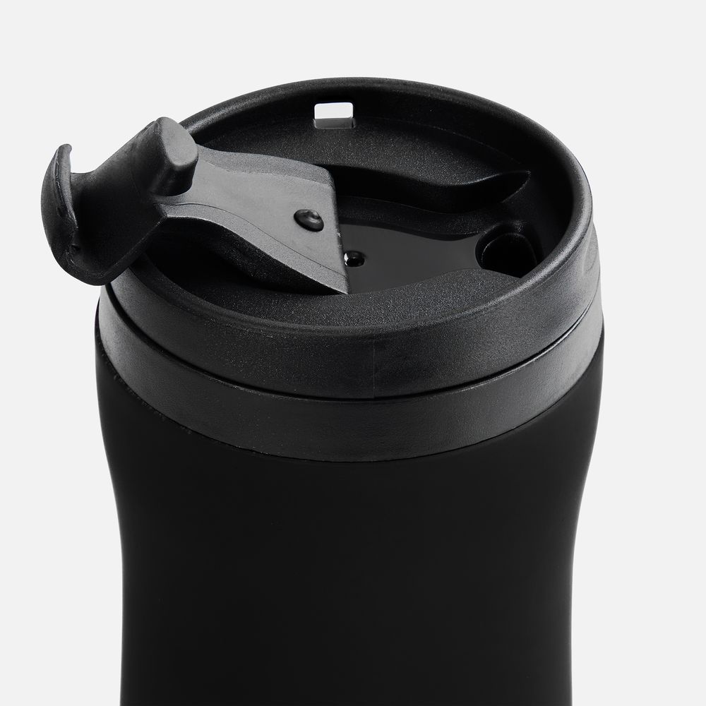 Двухслойная конструкция из нержавеющей стали снаружи и пищевого пластика внутри. Герметичная завинчивающаяся крышка с откидным клапаном для питья. Покрытие софт-тач. В отверстие в крышке можно вставить шнурок для удобного ношения стакана на руке. Шнурок в комплект не входит.