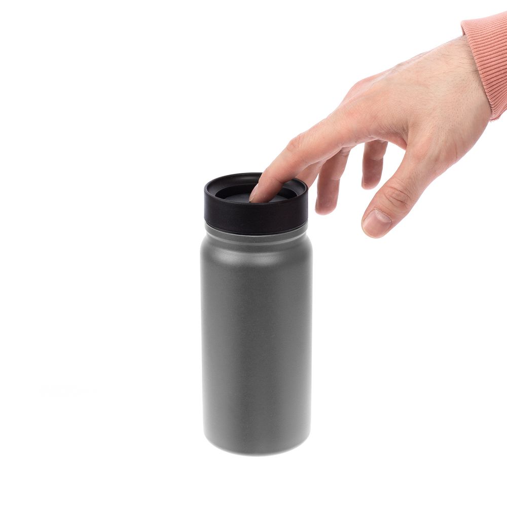 - Герметичная завинчивающаяся крышка с силиконовым уплотнителем и питьевой системой с клапаном — технология 360° позволяет одним нажатием открывать кружку и пить с любой стороны