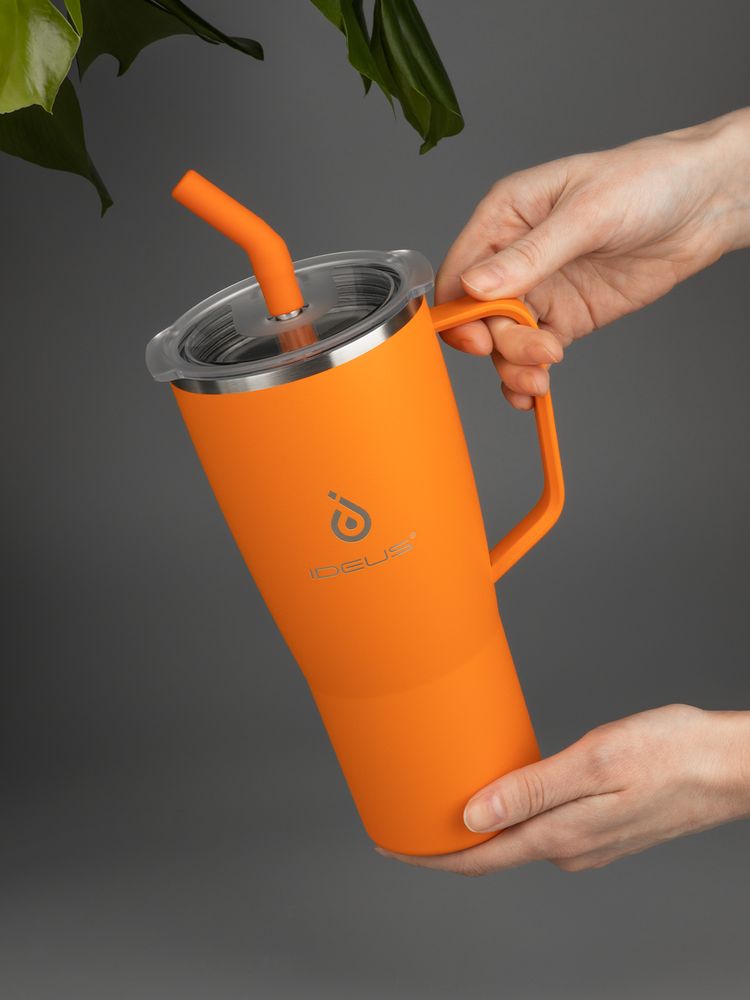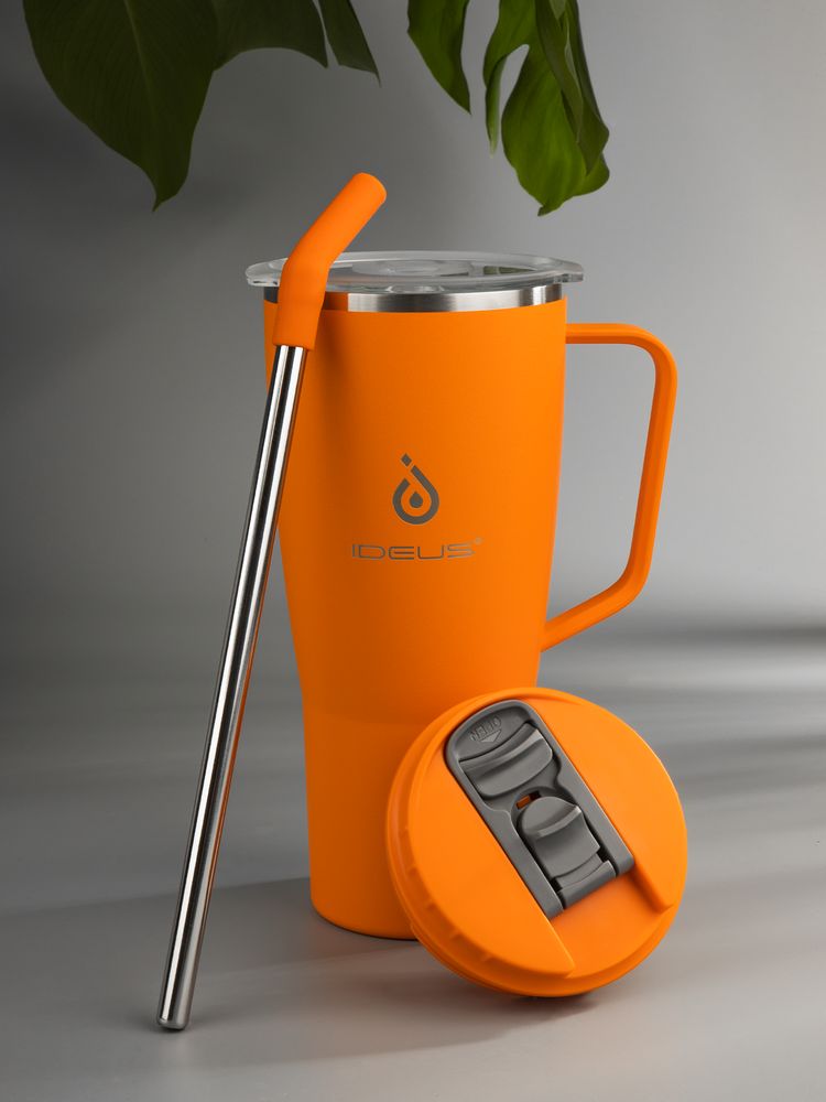 - 2 крышки в комплекте: одна на 100% герметичная с механизмом блокировки отверстия для питья, вторая — с отверстием для трубочки