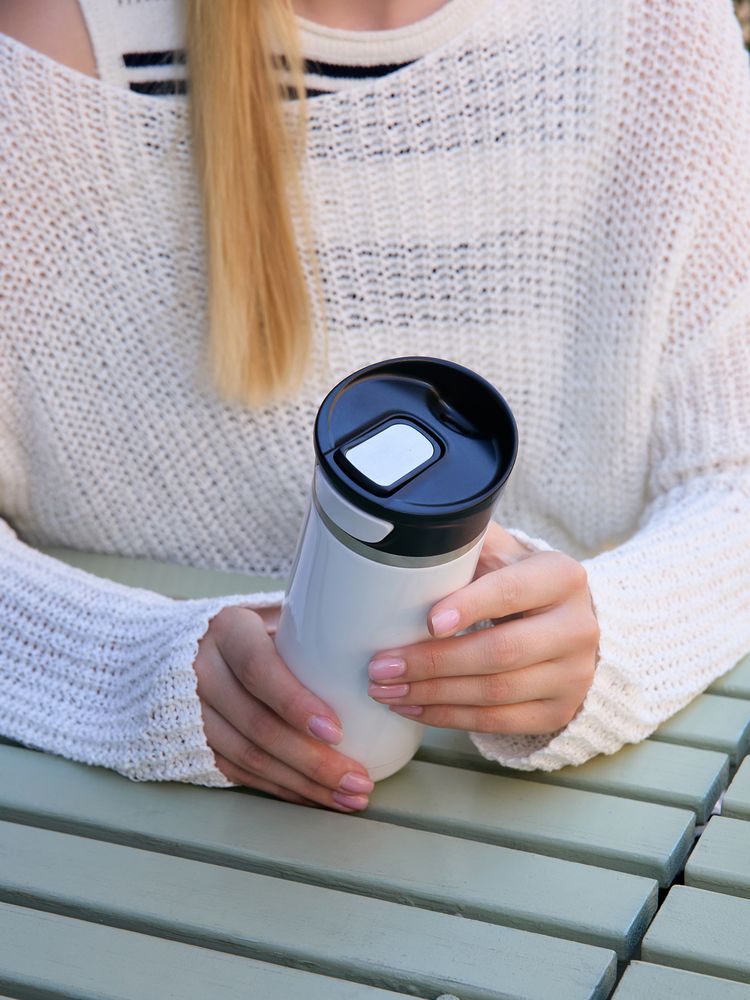 - Специальная система открывания клапана JustPushTheButton: чтобы открыть клапан для питья, нужно нажать боковую кнопку, чтобы закрыть, нужно нажать кнопку сверху крышки