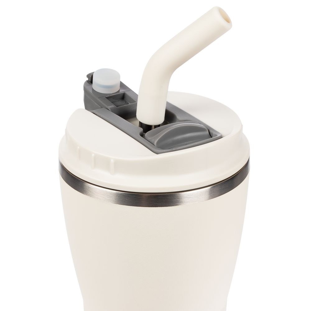 - 2 крышки в комплекте: одна на 100% герметичная с механизмом блокировки отверстия для питья, вторая — с отверстием для трубочки