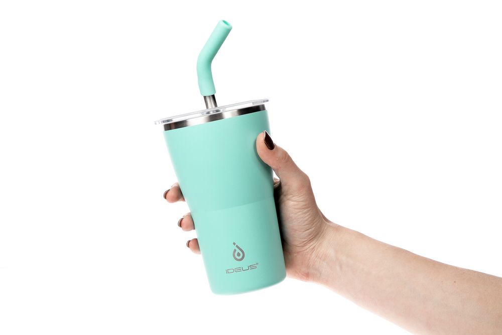 - 2 крышки в комплекте: одна на 100% герметичная с механизмом блокировки отверстия для питья, вторая — с отверстием для трубочки