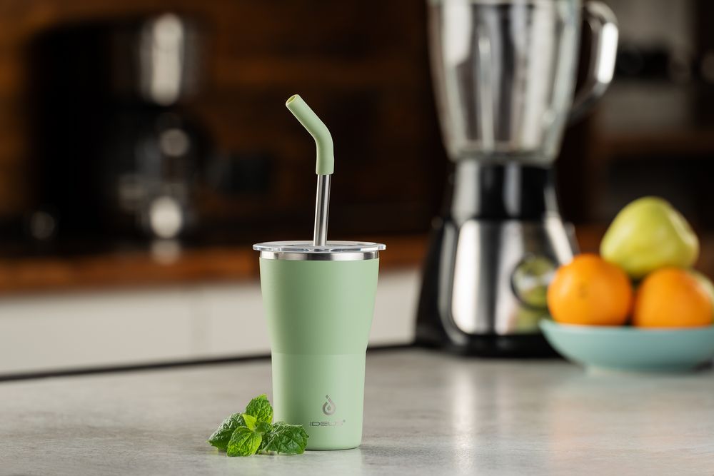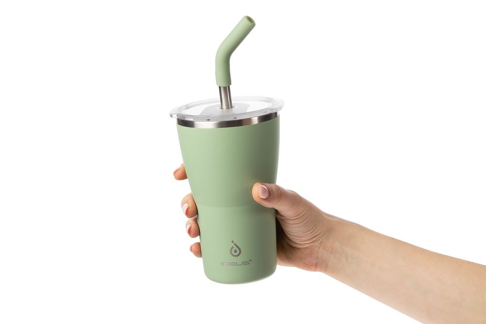 - 2 крышки в комплекте: одна на 100% герметичная с механизмом блокировки отверстия для питья, вторая — с отверстием для трубочки