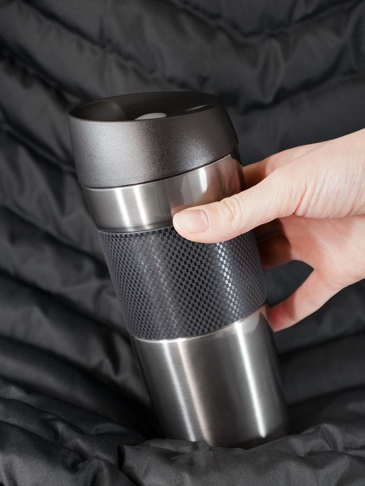 Двухслойная вакуумная конструкция из нержавеющей стали внутри и снаружи. Герметичная завинчивающаяся крышка с нажимным клапаном для питья.