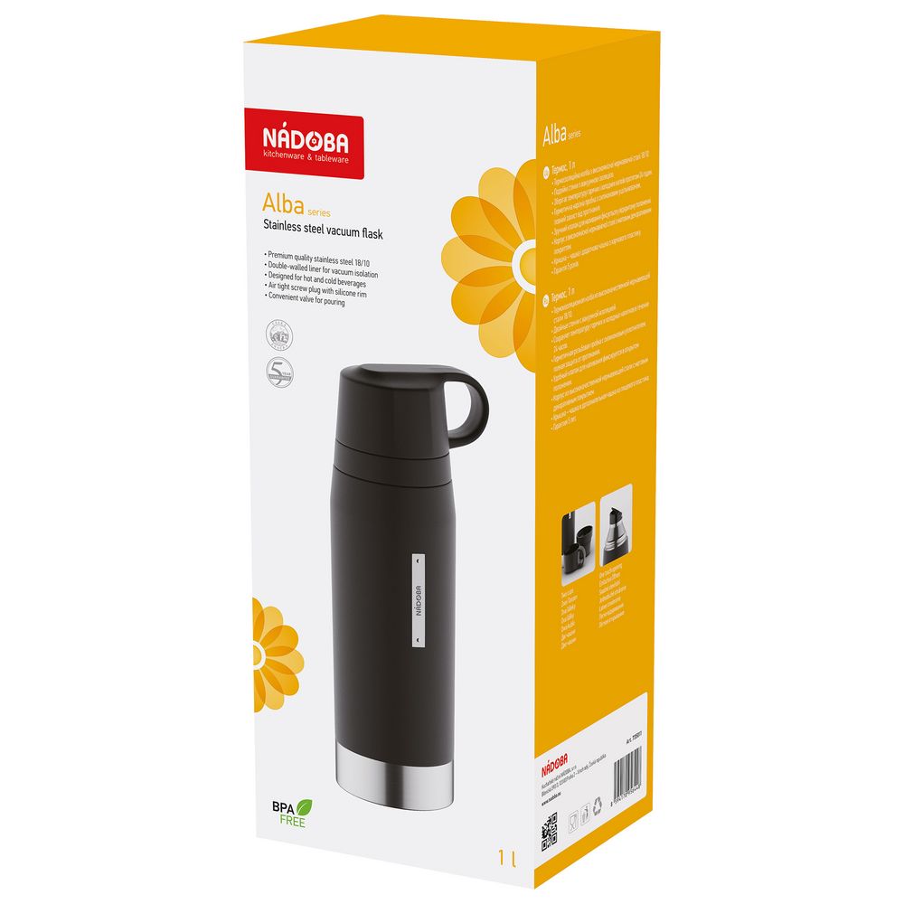 У нас Вы можете заказать Термос Alba Duo, черный качественного бренда Nadoba с логотипом по выгодной цене. Выберите способ нанесения логотипа и добавьте товар в корзину. Окончательную полную стоимость с брендированием по Вашему эскизу и доставкой сообщит наш менеджер после оформления заказа.