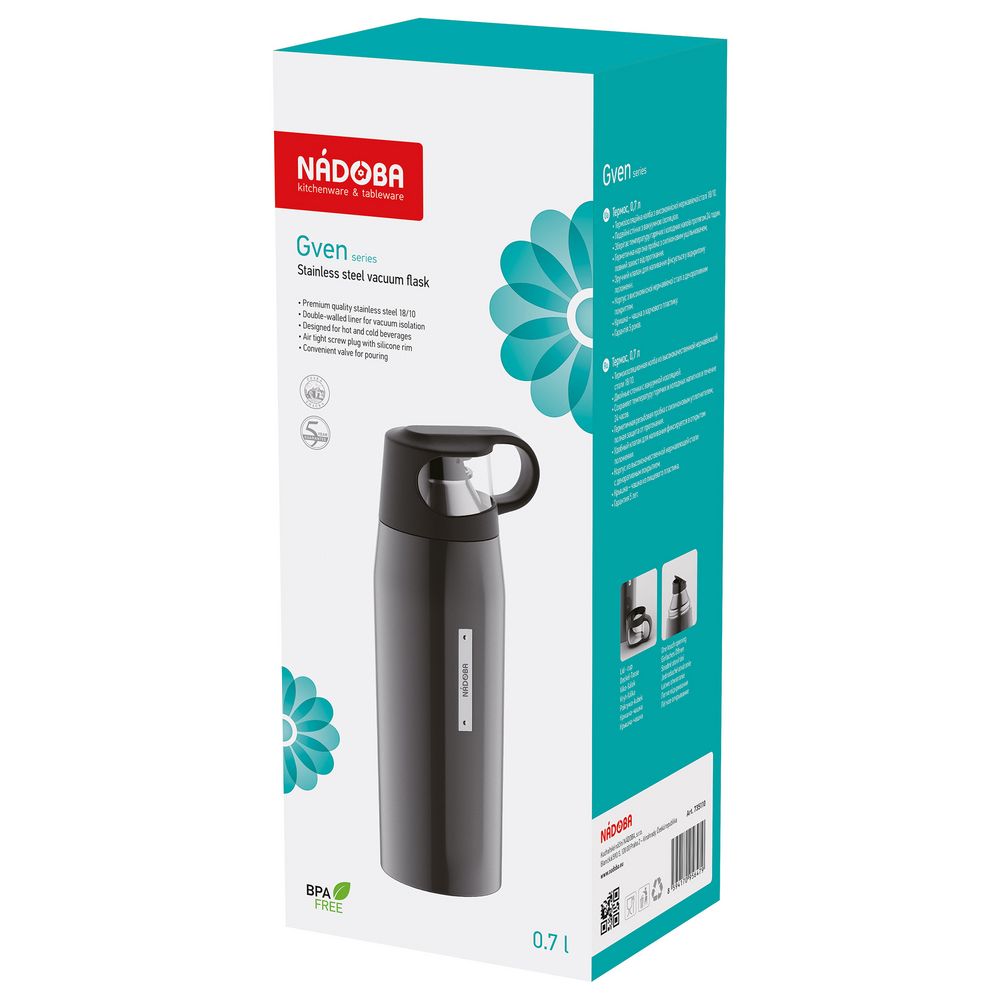 У нас Вы можете заказать Термос Gven, темно-серый качественного бренда Nadoba с логотипом по выгодной цене. Выберите способ нанесения логотипа и добавьте товар в корзину. Окончательную полную стоимость с брендированием по Вашему эскизу и доставкой сообщит наш менеджер после оформления заказа.