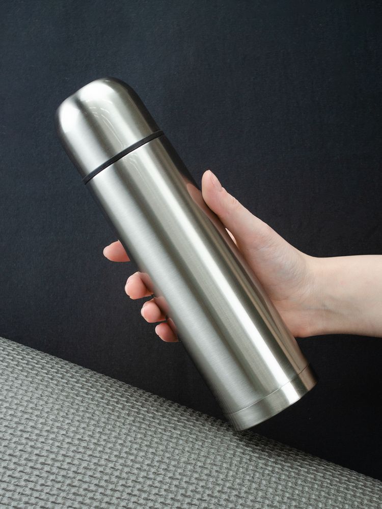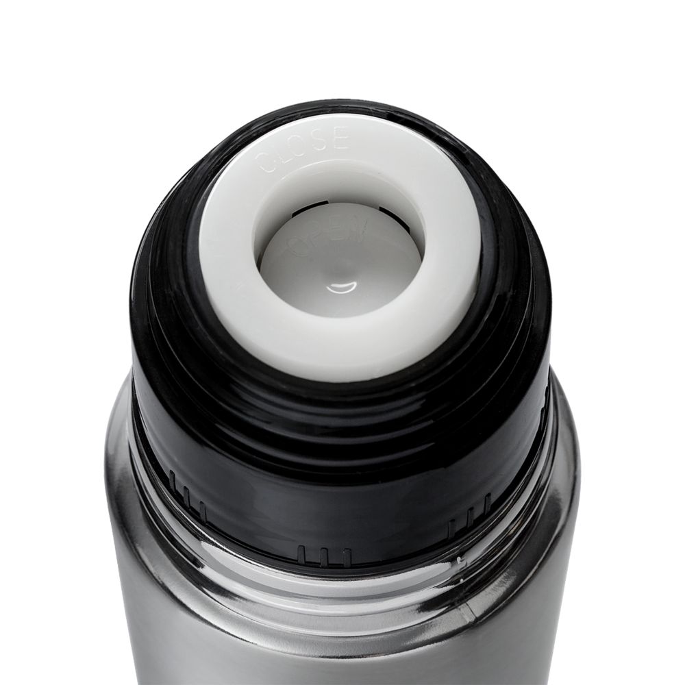 Двухслойная вакуумная конструкция из нержавеющей стали с завинчивающейся пробкой с клапаном.