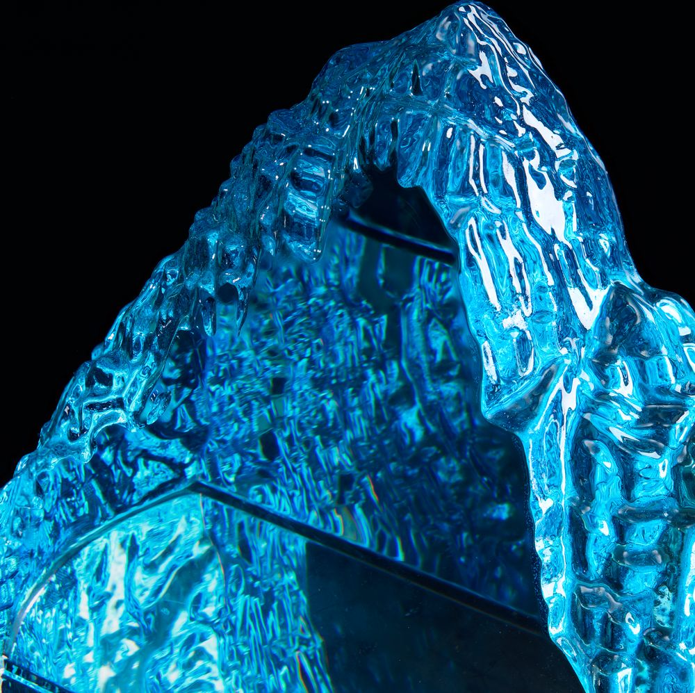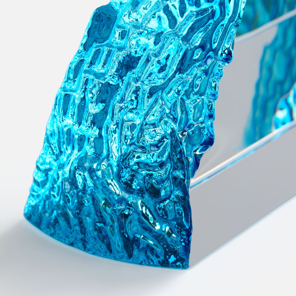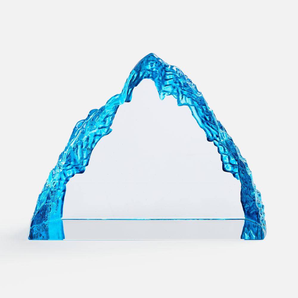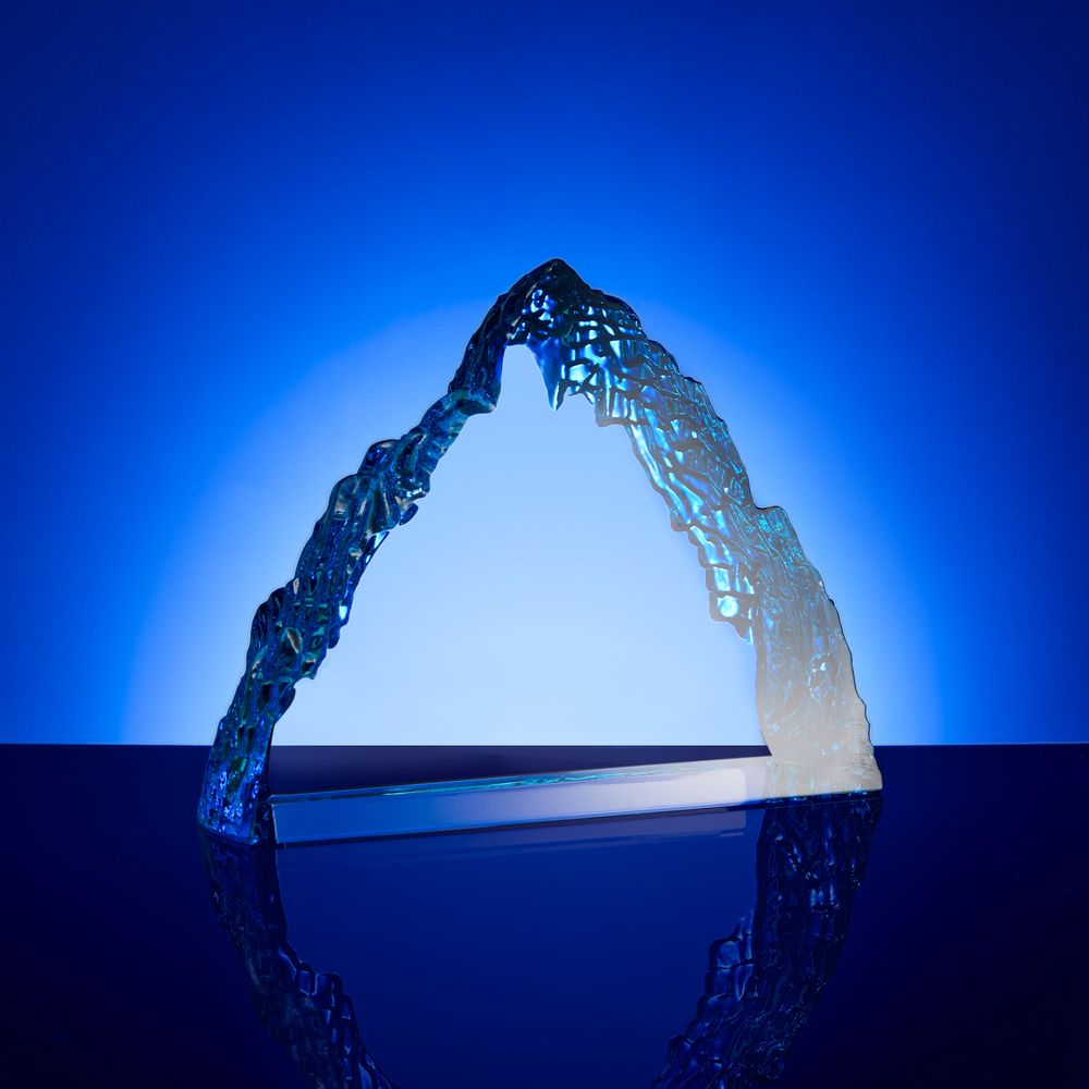 Необычная форма стелы, похожая на живописный горный хребет, символична и будет напоминать о покоренных высотах, вдохновляя на новые свершения. Эффект заснеженной вершины дополнительно усиливается благодаря голубоватому цвету.