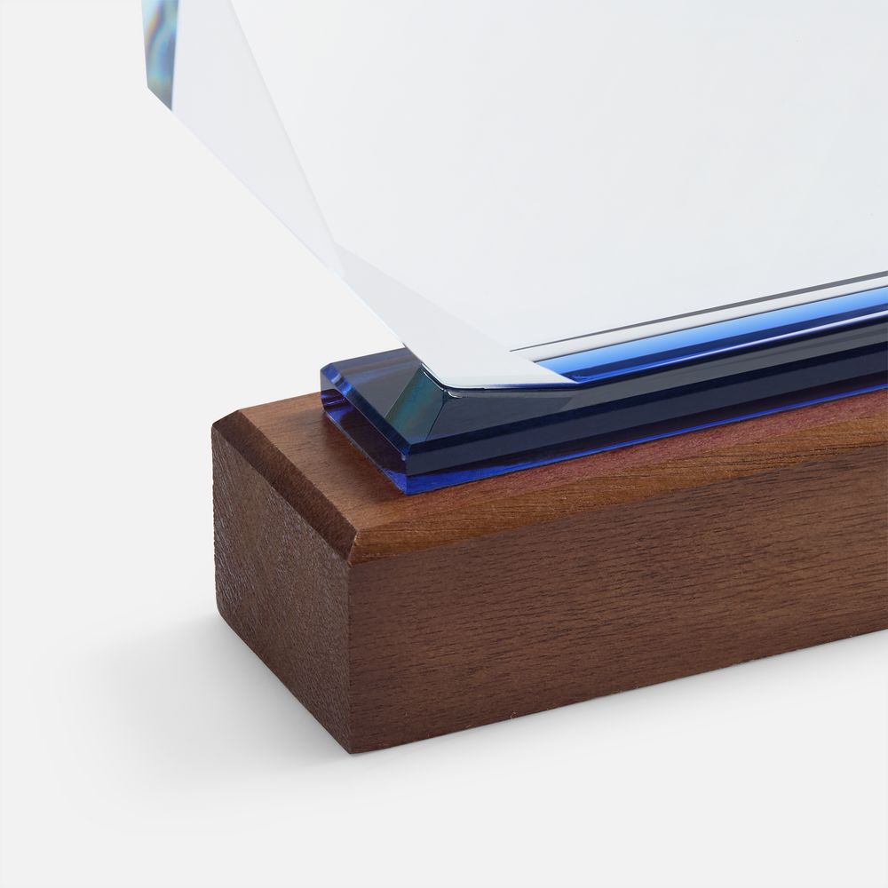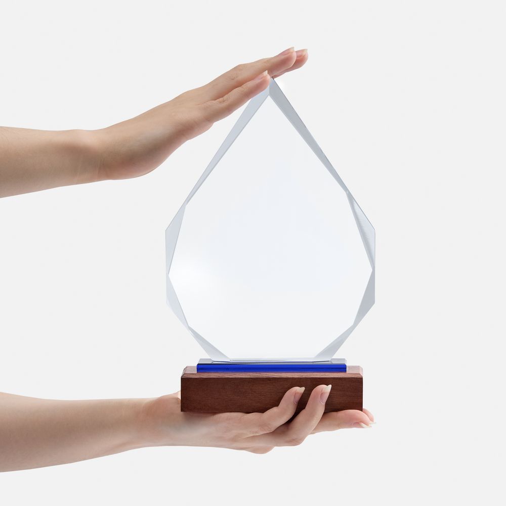Награда изготовлена из стекла К9, в основе которого лежит оптическое боросиликатное стекло. Эту марку стекла отличает низкий процент посторонних включений, высокий показатель преломления и высокая прозрачность — идеальные качества для изготовления наград премиального уровня.