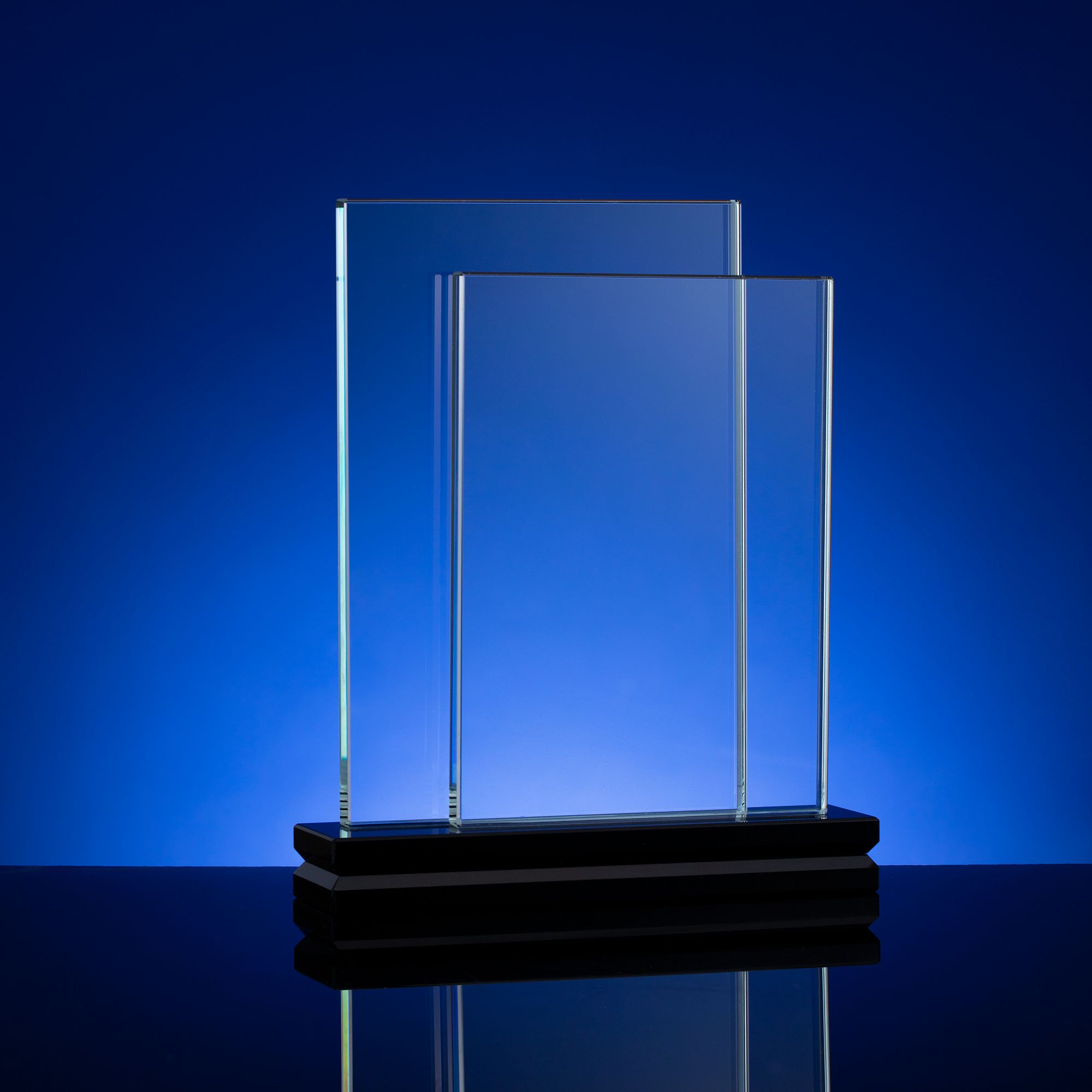 Стела изготовлена из стекла К9, в основе которого лежит оптическое боросиликатное стекло. Эту марку стекла отличает низкий процент посторонних включений, высокий показатель преломления и высокая прозрачность — идеальные качества для изготовления наград премиального уровня.