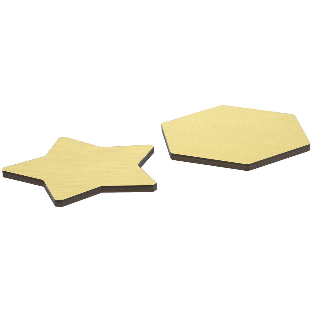 Вставка с шестиграником из зеркального пластика на деревянной основе крепится на приподнятое основание внутри стелы, что создает объем и многослойность награды. На вставке предусмотрен клеевой слой для крепления после нанесения.