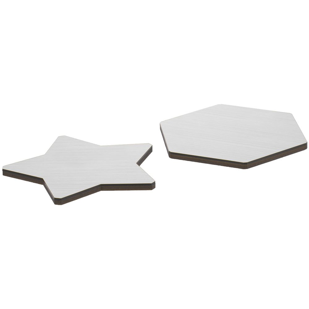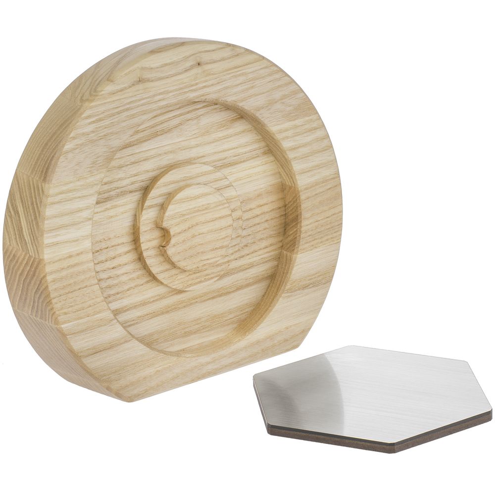 Вставка с шестигранником из зеркального пластика на деревянной основе крепится на приподнятое основание внутри стелы, что создает объем и многослойность награды. На вставке предусмотрен клеевой слой для крепления после нанесения.