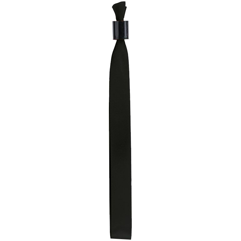 Мягкая атласная лента не причиняет дискомфорт и не сковывает движения, а пластиковый ограничитель с зубчиками цепляется за волокна и не позволяет без повреждения снять браслет и передать его кому-то еще.