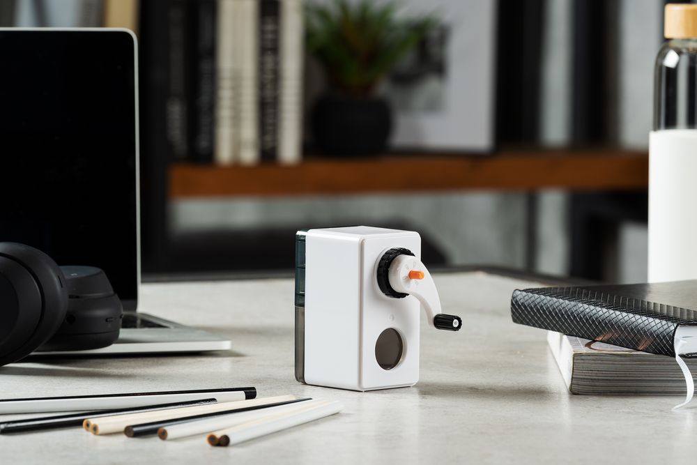 Вращающийся роликовый нож обеспечивает быструю и острую заточку карандашей диаметром до 8 мм. Точилка оснащена переключателем степеней заточки, что позволяет качественно заточить как цветные (с более тупым углом заточки), так и чернографитные карандаши.