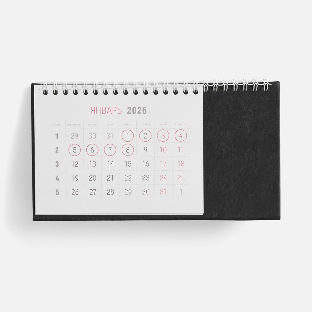 Настольный, перекидной календарь-домик выполнен из материала Latte, черный АА.