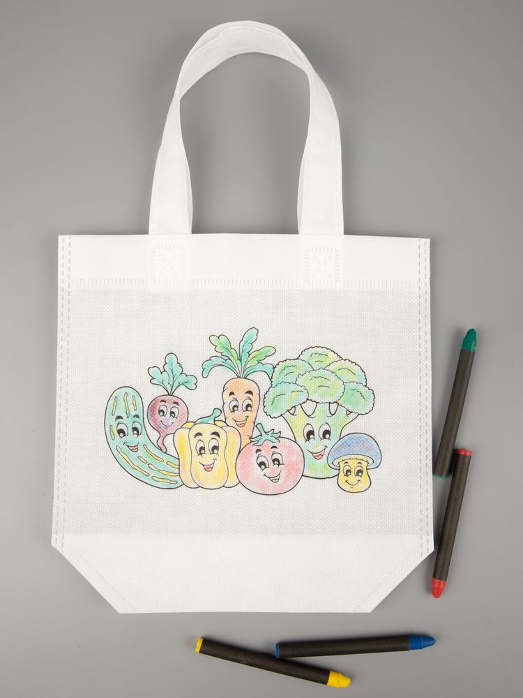 В наборе сумка и набор из 4 восковых карандашей.