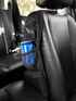 Крепится за подголовник сверху и за фиксатор ремня безопасности или за основание кресла снизу.