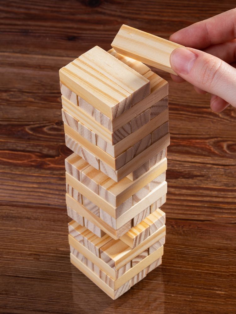 Игра состоит из 48 деревянных брусочков. Поставляется в картонной коробке. Инструкция с правилами в комплекте.