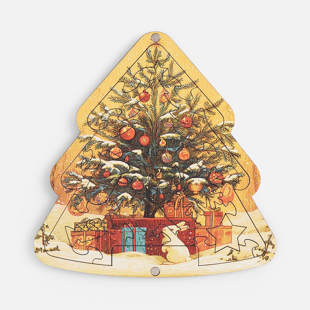 Упаковка в форме елочки сама по себе является украшением, а фигурные детали пазла — конфеты, снежинки и елочки — складываются в гармоничную атмосферную композицию. Магнитная крышка на упаковке обеспечивает надежное хранение всех элементов.