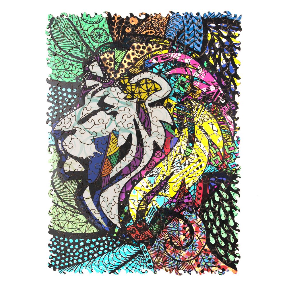 Пазл поставляется на подложке из лакированной древесноволокнистой плиты высокой плотности толщиной 3 мм. Упакован в термопленку.
