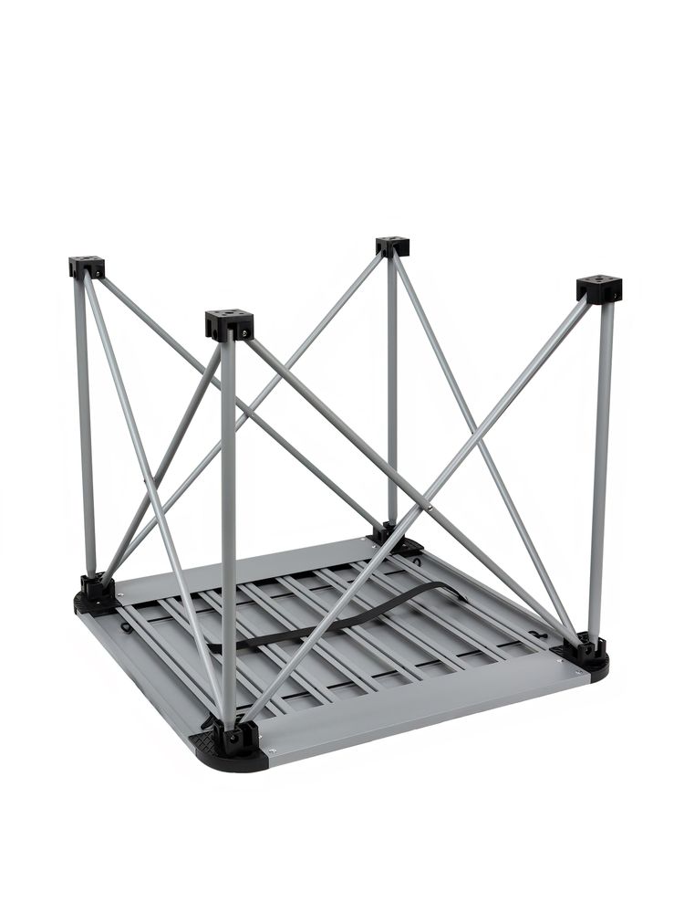 Его складная конструкция облегчает хранение и транспортировку: стол легко убирается в чехол и свободно размещается в багажнике автомобиля. Легкая и прочная столешница в сочетании с алюминиевым каркасом выдерживают значительные нагрузки, обеспечивая долговечность и надежность в любых условиях.В комплект входит чехол из полиэстера.