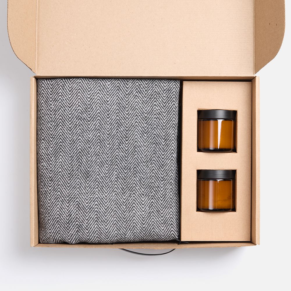 Мягкий плед с нежной бахромой станет идеальным спутником для расслабляющих вечеров и придаст стильный облик любому интерьеру. Две ароматические свечи в элегантных стеклянных баночках мягко наполнят пространство расслабляющим светом и тонким ароматом, добавляя нотки спокойствия и гармонии.