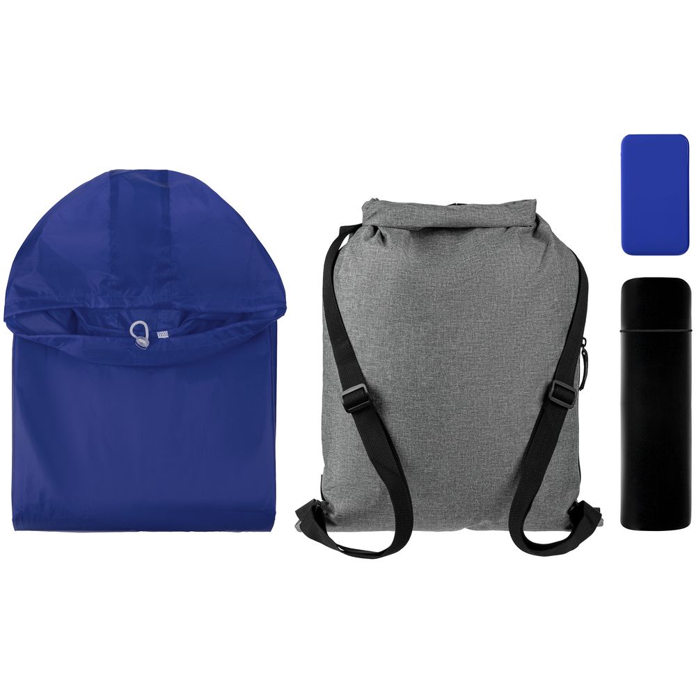 Термос с любимым горячим напитком поможет согреться, с внешним аккумулятором вы всегда будете на связи, а дождевик-анорак из прочной водозащитной ткани таффета легко защитит от любой непогоды.