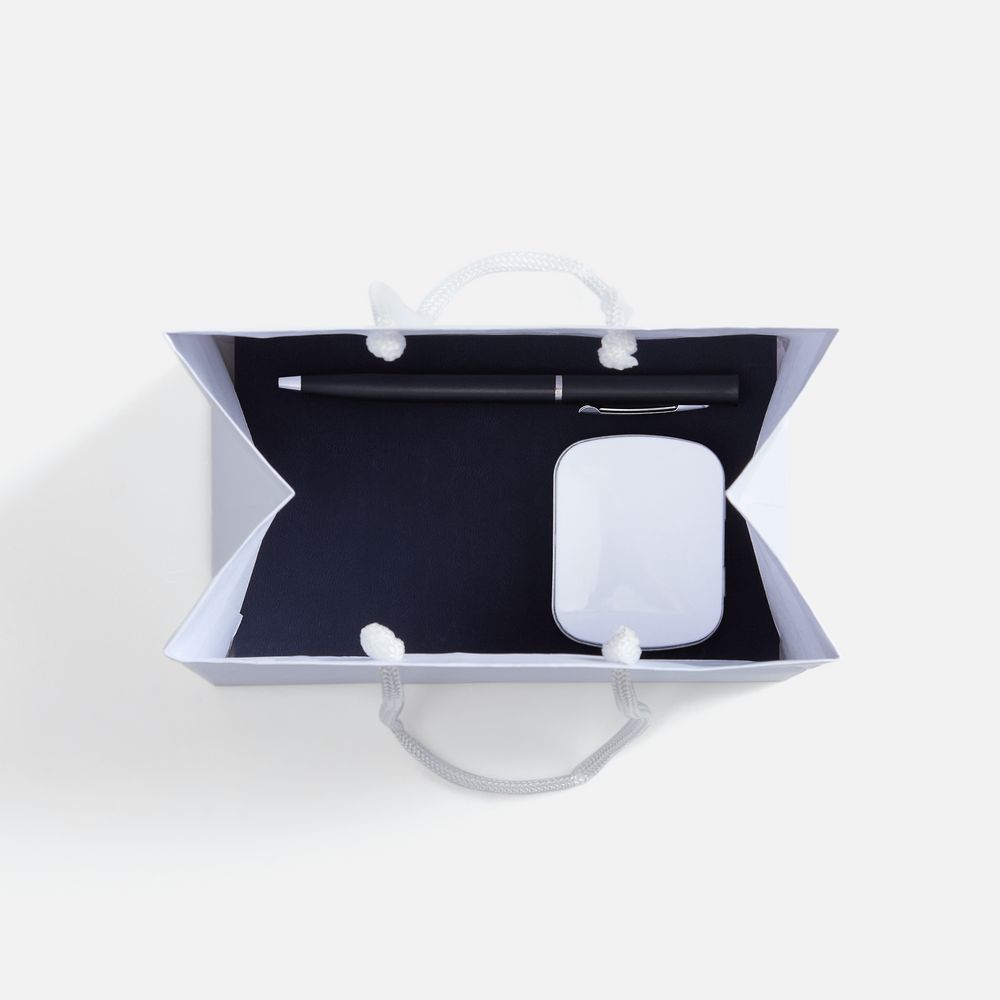 Компактная упаковка делает набор удобным для раздачи большому количеству людей, а практичная начинка позволит использовать подарок в работе и повседневной жизни.