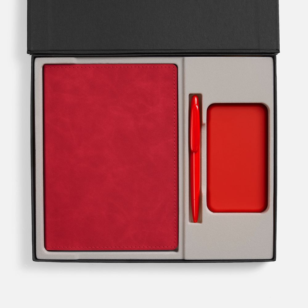 Набор с внешним аккумулятором позволит всегда оставаться на связи, а бессменная офисная классика — ежедневник и ручка — помогут направить энергию в правильное русло!