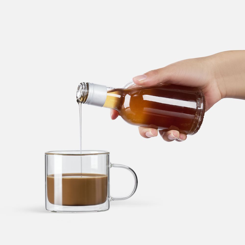 Состав: вода, подсластители (изомальт, экстракт Луо Хан Гуо), натуральный ароматизатор «амаретто», загустители: гуммиарабик (смола акации) и гуаровая камедь, регулятор кислотности лимонная кислота, стабилизатор E466, натуральный краситель сахарный колер, консервант сорбиновая кислота.